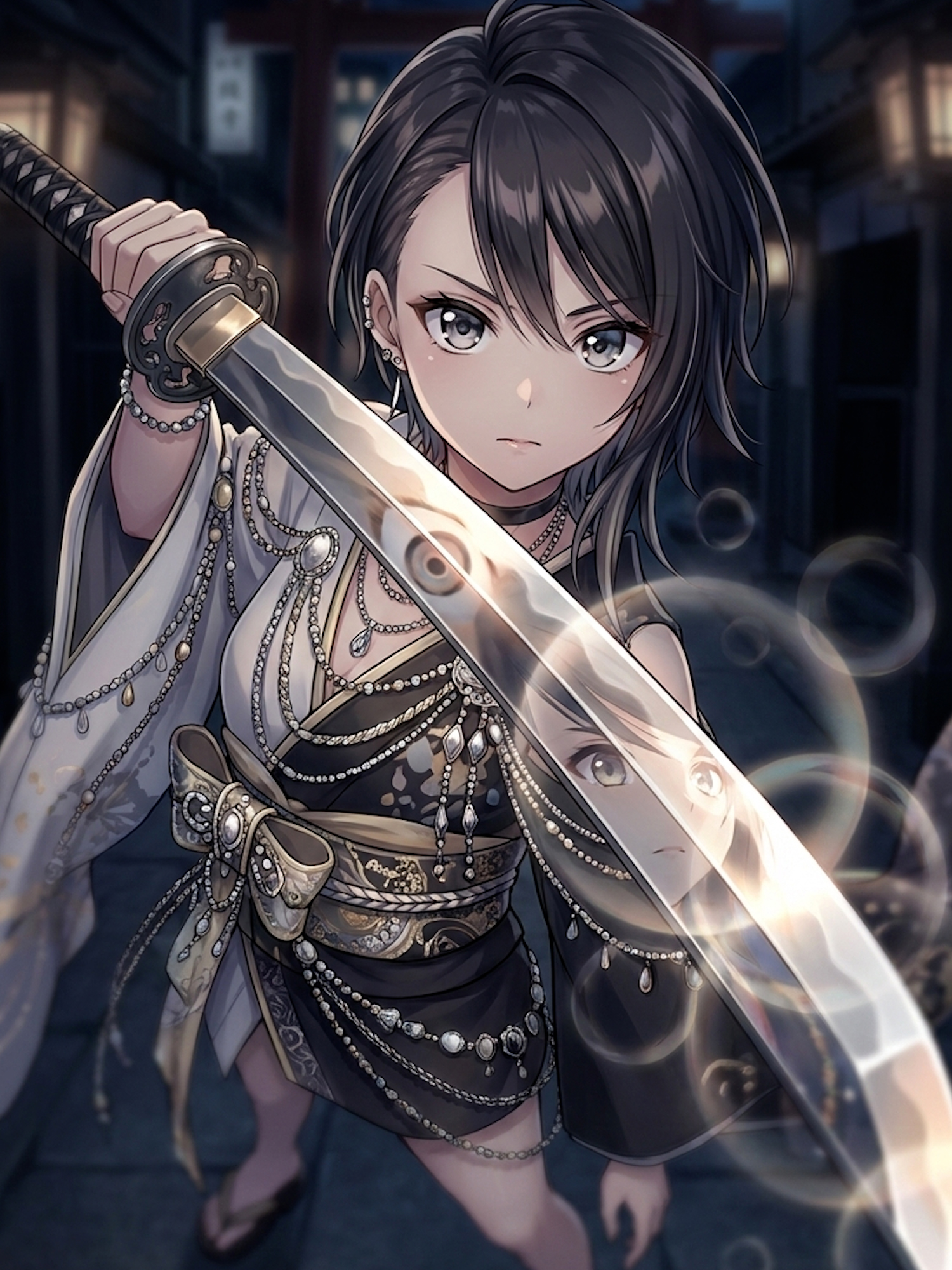 In some modern visual reinterpretations, hitotsume-kozō are imagined as a yōtō — a blade marked by a single, unblinking eye set into the guard or steel. The sword does not threaten through force; it unsettles by watching. To hold it is to feel observed, as if every action is already noted.