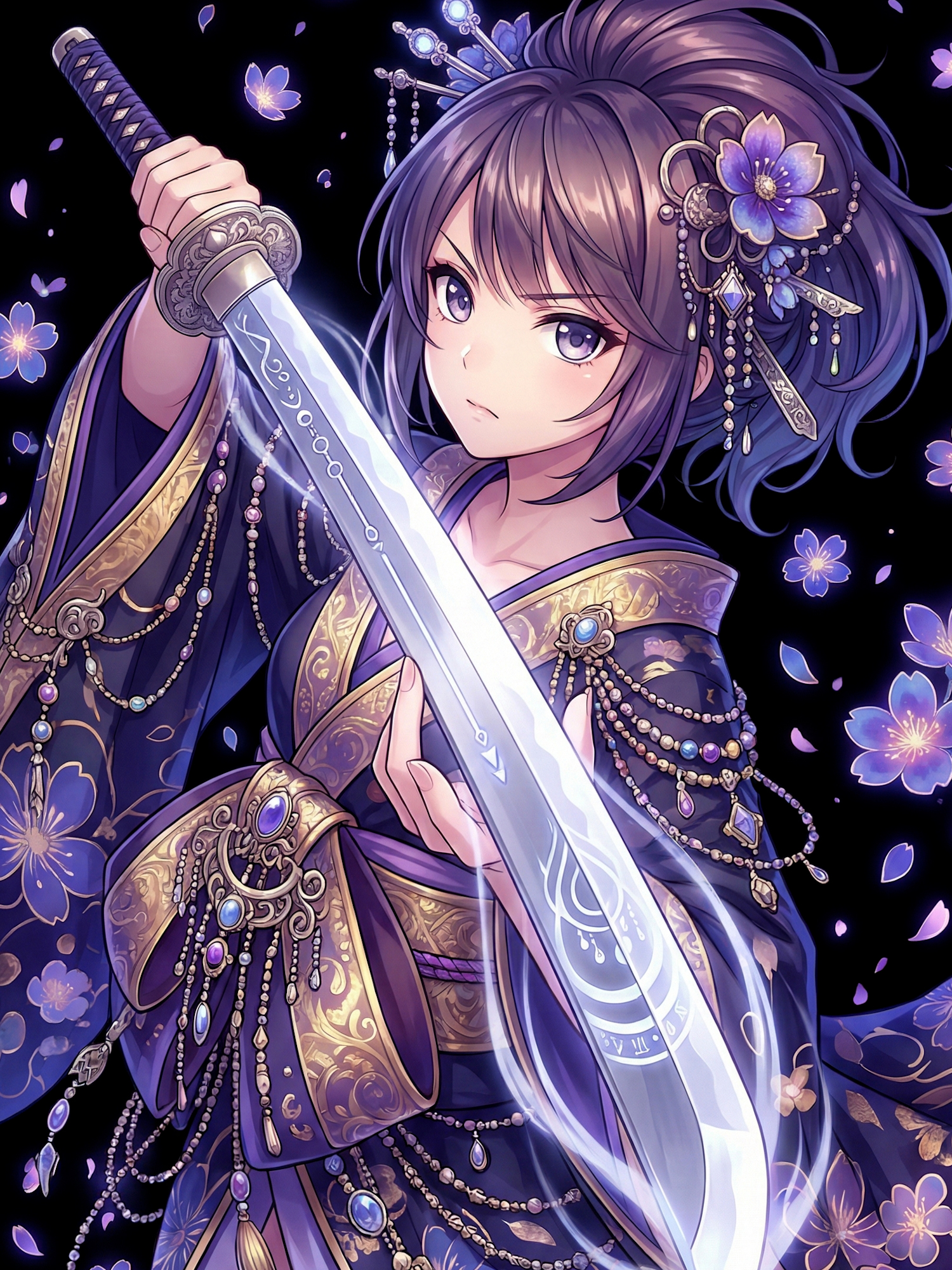 In some modern visual reinterpretations, Tsurube-otoshi manifests as a yōtō — a blade that falls rather than swings. The sword descends vertically from darkness, turning gravity itself into the mechanism of harm.