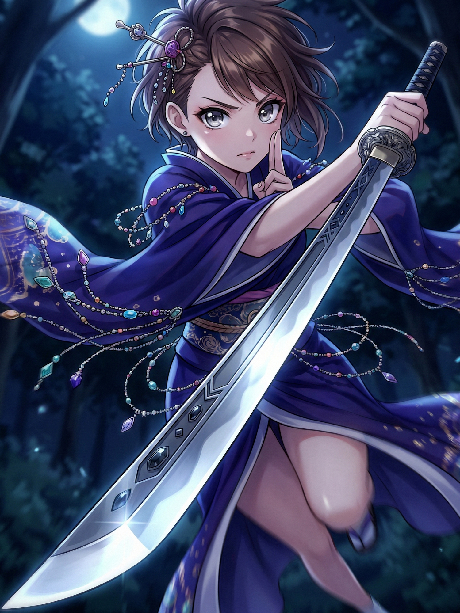 The yōtō associated with her story, sometimes called the “Blade of Withheld Crossing,” darkens at its hilt where hands linger too long. It is said to warm like skin, drawing heat not from battle but from obsession itself. When unsheathed, its edge gleams faintly red, as if illuminated by the sunset over a river no one dares to cross. It is a weapon that does not separate life and death—it divides the living from what they cannot release.