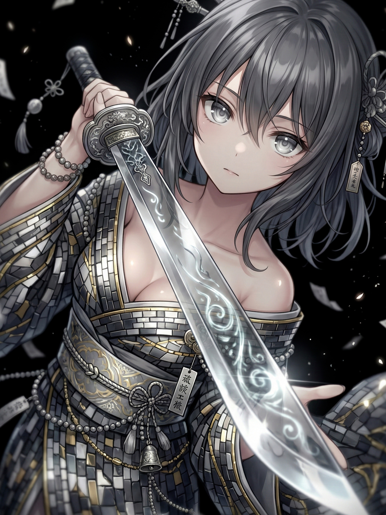 In visual reinterpretations, their essence is embodied through the yōtō known as the “Nameless Blade.” Forged without crest or inscription, its steel bears no owner’s reflection. When drawn, it emits no sound—only the absence of it. The sword is a weapon that refuses purpose, a symbol of identity erased before history could record it. It does not cut the living; it divides the seen from the unseen.