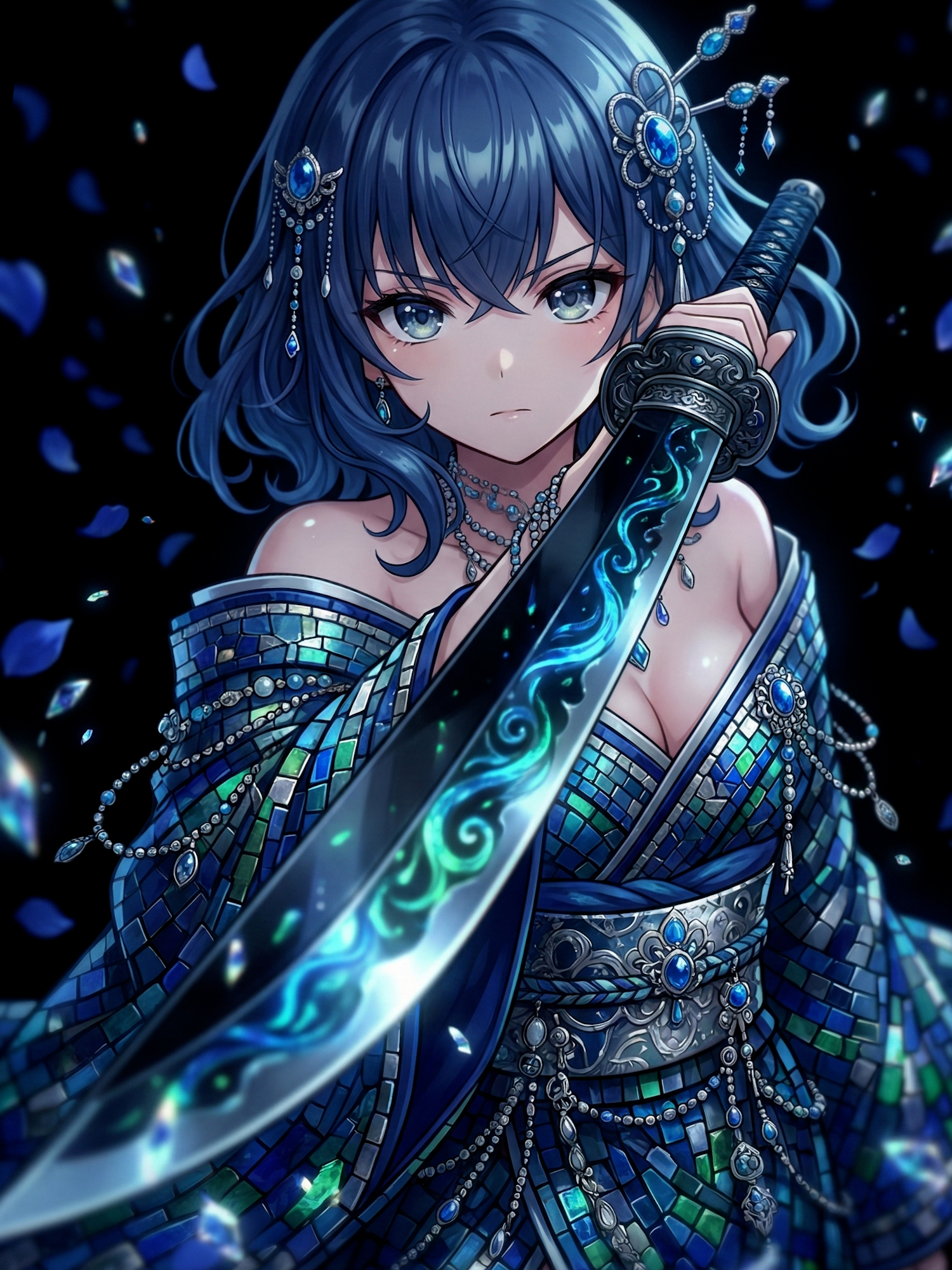 In some modern visual reinterpretations, chōseki no kai manifest as a yōtō — a blade etched with tidal lines. The sword appears to rise and fall with unseen water, embodying rhythm rather than strike.